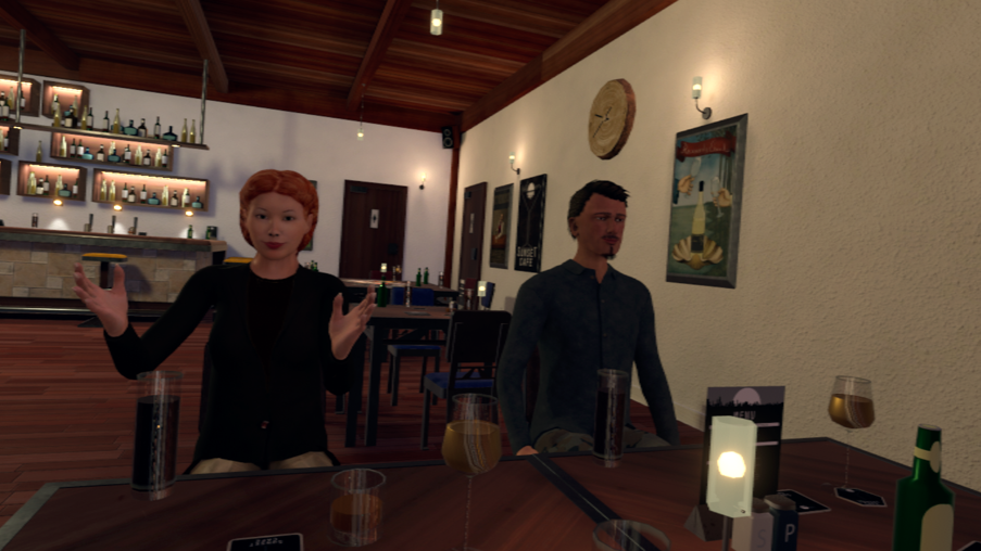 In het onderzoek werken Marjolijn en Lisette vanuit de cognitieve gedragstherapie. "We staan stil bij negatieve gedachten en vermijdingsgedrag. We zien dat depressieve cliënten zich vaak terugtrekken uit sociaal contact. Met VR willen we dit contact meer levendig en echt maken, door de sociale omgeving na te bootsen in die virtuele omgeving. In de rollenspellen oefenen we met eenvoudig sociaal contact. Iedere cliënt vanuit zijn eigen behandeldoel. De één vindt het lastig om bij te praten met een vriendin. Met een ander oefen je een gesprek op het werk. Alleen al uitleggen hoe het met je gaat, kan voor iemand met een depressie voelen als een 'megaberg'. Dat gaan we oefenen." Het voordeel van VR is dat je als behandelaar twee rollen kunt vervullen. "Je bestuurt de avatar die de cliënt kiest. Daarnaast kun je de setting op pauze zetten en met de eigen stem interveniëren en coachen. 'Wat gaat er in je om? Wat zou je kunnen zeggen? Wat zou je kunnen doen?'"
